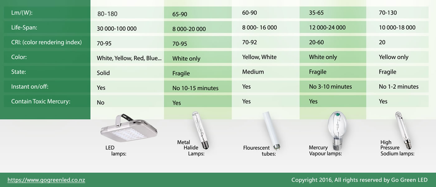 LED lights are inherently directional light sources and offer better optical control than alternative older light sources like fluorescent, metal halide, mercury vapour and high pressure sodium lamps. LED lights can produce the same high light levels on nearby surfaces or lower light levels on more distant surfaces with fewer total lumens than these alternatives. To maximize energy efficiency and lighting quality, it is important to evaluate each lighting option against the specific light level. For more information’s please visit: (Link to LED lighting design proposal)
