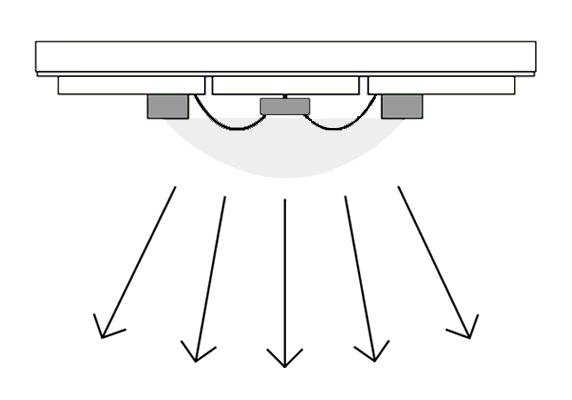 Figure 1, Figure 2, Figure 3 show the advantages of directional LED light fittings in this application. Omnidirectional Metal Halide lamps do not transmit all their light toward the target to be illiminated, resulting in losses within the fixture. The directional LED light fittings transmits all its light toward the target, with minimal to no losses within the fixture. As a result of this difference a lumens-for-lumens match between an LED light fittings and Metal Halide lamp is only partially relevant.